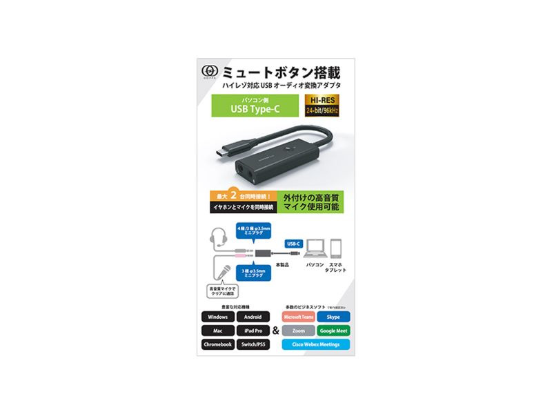 | 商品名 | ミュートボタン搭載ハイレゾ再生対応 小型・軽量 USB-C(R)オーディオ変換アダプタ |