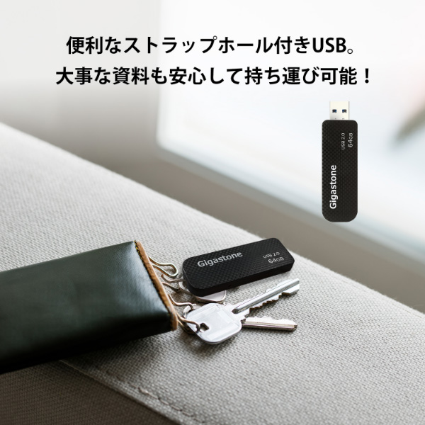 USB2.0メモリ 64GB キャップレス スライド式 データバックアップ 高性能 高品質NAND 小型