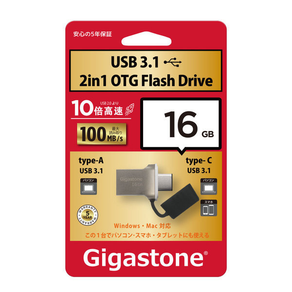 OTG USB-A、USB Type-C両対応 USBメモリー 16GB
