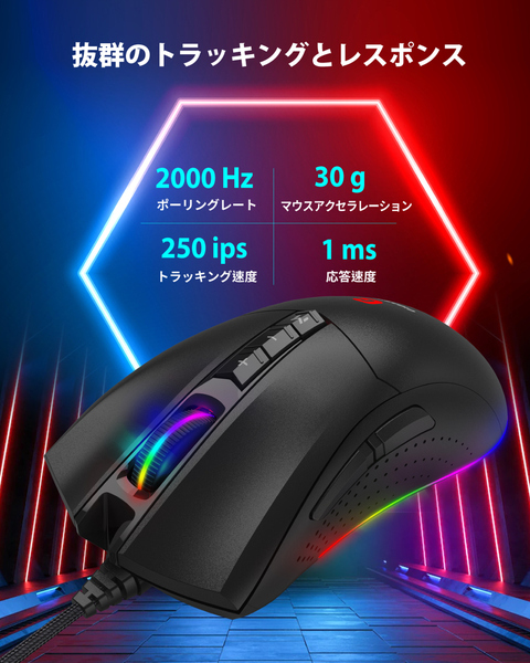 | 商品名 | ゲーミングマウス 12000 DPI 有線ゲーミングマウス 調整可能RGB バックライト 8個のプログラム可能ボタン搭載 |