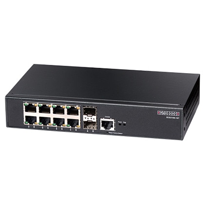ECS2100-10Tは、RJ-45ポート(10/100/1000BASE-T)を8ポート、SFPポート(1000BASE-SX/LX/ZX)を2ポート搭載した、産業用イーサネットスイッチです。SFPポートは、DDM(Digital Diagnostic Monitoring)に対応し、リアルタイムでSFPポートの動作状態を監視することができます。