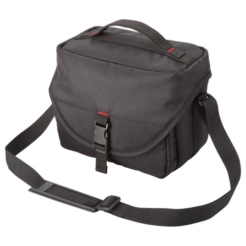 デジタル一眼カメラのWズームキットに最適なショルダーバッグです。内寸法:W210×H145×D95mm、外寸法:W240×H190×D130mm、重量:約300g、材質:ポリエステル。