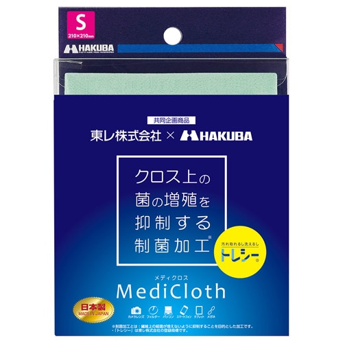 東レの高分子科学技術から生まれた超極細繊維(マイクロファイバー)を使用した高性能クリーニングクロス『トレシー(R)』に、臭いの元となる菌の増殖を抑制する制菌加工を施した商品です。東レが開発した制菌加工技術により制菌成分が繊維の中に入っているため、制菌効果が長い間持続しクロスを清潔に保ちます。※黄色ブドウ球菌に効果があります。トレシーを採用したメディクロスの超極細繊維(約2μm)が拭き取り面に密着し、「ミクロポケット」(繊維の隙間)に汚れを取り込み除去します。吸水性にすぐれ、水や油をすばやく吸い上げます。繊維と繊維の隙間「ミクロポケット」に汚れが取りこまれることで汚れの再付着を抑えます。洗濯することでふき取り性能が回復するので長くご使用いただけます。■商品サイズ:約210×210mm■材質:ポリエステル
