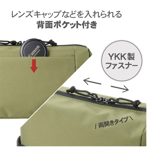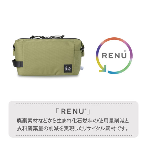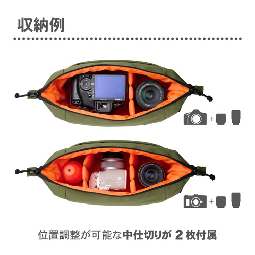 伊藤忠商事株式会社の登録商標である循環型素材ブランド「RENU(R)」(レニュー)の再生ポリエステルを採用し、化石燃料の使用量削減と衣料廃棄量の削減を実現した、サスティナブルでタウンユースに適したカジュアルなインナーポーチです。 ※ヘザーグレーはRENUを使用しておりません。程よいクッション性があり、普段使いのバッグに入れても、かさばらずに安心してカメラを持ち運ぶことができます。 ■内寸法:約255×H140×D110mm ■外寸法:約275×H155×D125mm ■重量:約210g ■材質:RENUポリエステル、ポリエステル ■付属品:中仕切り×2、ショルダーベルト