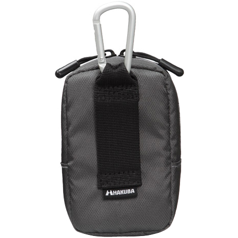 軽量ナイロン素材のカメラポーチ。フロントポケットはメディア等のアクセサリー類の収納に適しています。背面には持ち運びに便利なベルト通しとカラビナ付き。