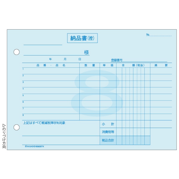 | 商品名 | 納品書 B6ヨコ (軽減税率専用) インボイス対応 3P |