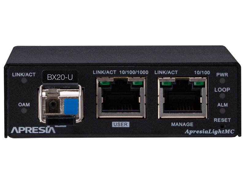 ApresiaLightMC-BX20U SNMP管理機能付メディアコンバーター 10/100/1000M、SMF1芯、最大20km伝送