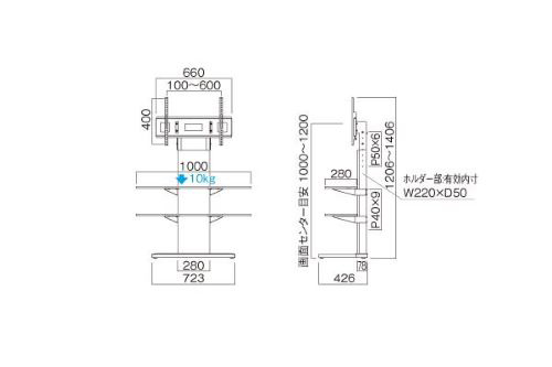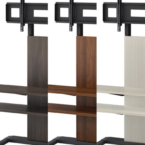 ※本製品は必ず壁に寄せて設置してください。 86V型まで、テレビ取付部耐荷重 50㎏以下、高さは50mmピッチ5段階調節可能、ワイド棚板1000mm2枚付属「取り外して使用可能」、アダプターやHDD等を設置可能なホルダー付「有効内寸W220×D50mm」、床と壁の両方向にアジャスター付、選べる3色 Bブラック Mダークブラウン Wホワイト