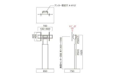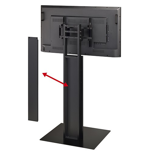 ~80V型 脚部が気にならないフラットベースタイプ でベース部6mm厚、ディスプレイ角度調整:前方 11 度 後方 3 度、高さ調整:50mmピッチ 6段階可能、支柱背面に配線収納可能、背面パネル付、アンカー固定も可 【2梱包製品/2梱包目 重量31.8㎏ サイズ 790(縦)× 900(横) ×50(高さ)㎜】