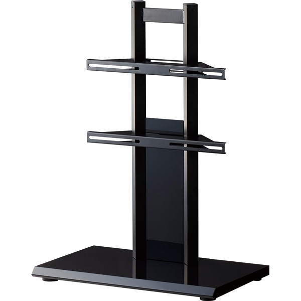 業務用ディスプレイのラックトップスタンドとして使用。壁掛使用していたスタンドが無いテレビをラック設置時に活用できます。支柱裏に配線処理し底板から通す事が可能です。テレビの高さは無段階に調節可能で、ガタツキを抑えるアジャスター付。 ~55V型