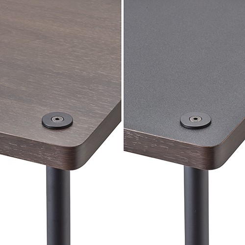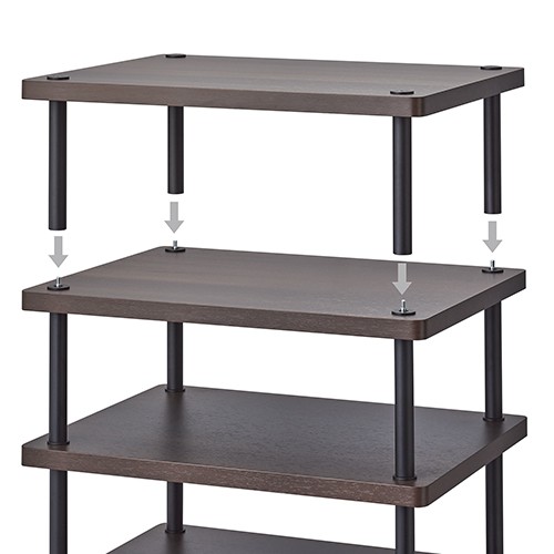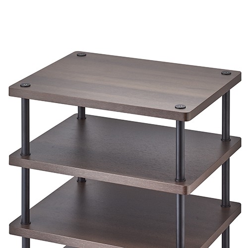 フルオープンデザインのオーディオラック 天板 棚板はリバーシブル仕様 パイプと専用ネジで挟み込むジョイント構造 天板 棚板 底板 それぞれ耐荷重25kg以下