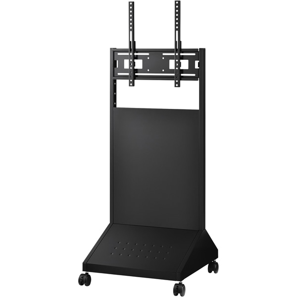~55V型まで【垂直タイプ】 収納ボックスはフラップ扉式、高さ調整:50mmピッチ 4段階可能、パネル背面に配線レール加工、直径50mmキャスター(2個ストッパー付)、鍵穴加工(市販のワイヤーロック取付可)