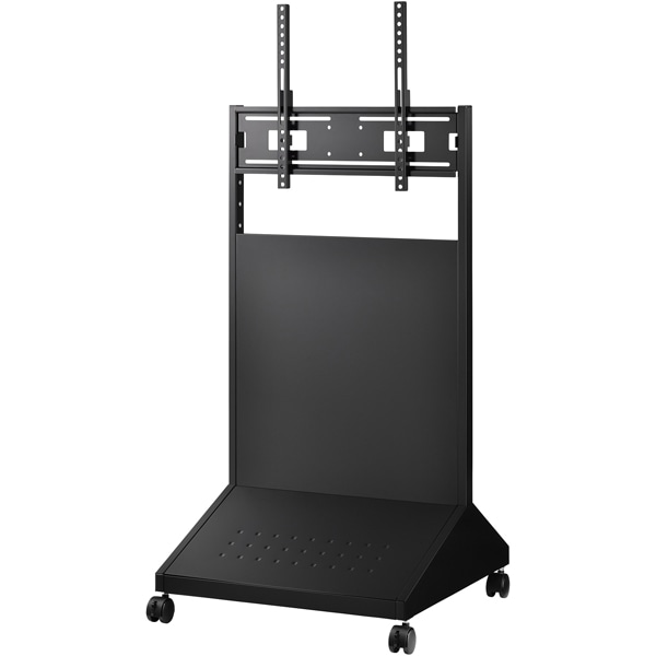 ~65V型まで【垂直タイプ】 収納ボックスはフラップ扉式、高さ調整:50mmピッチ 4段階可能、パネル背面に配線レール加工、直径50mmキャスター(2個ストッパー付)、鍵穴加工(市販のワイヤーロック取付可)