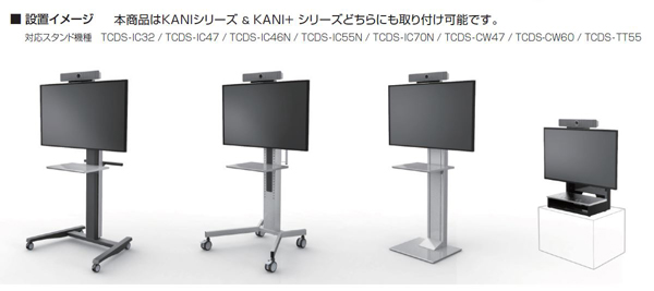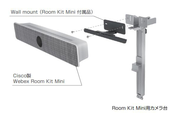 Cisco社製 Webex Room Kit Miniをディスプレイ上部に設置可能。ディスプレイに合わせて高さ調整・前後調整(厚み40~120mm)可能。
