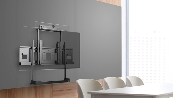 Cisco製 Room Barの専用マウント金具。モニターの上下どちらも設置が可能。モニターとフィットする調整機能付き。モニター設置後でも取り付けが可能。サテンブラック色塗装。