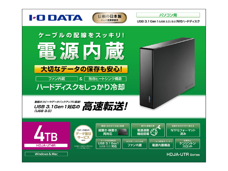 | 商品名 | USB3.2 Gen1(USB3.0)対応 電源内蔵 冷却ファン搭載 外付けハードディスク 4TB |