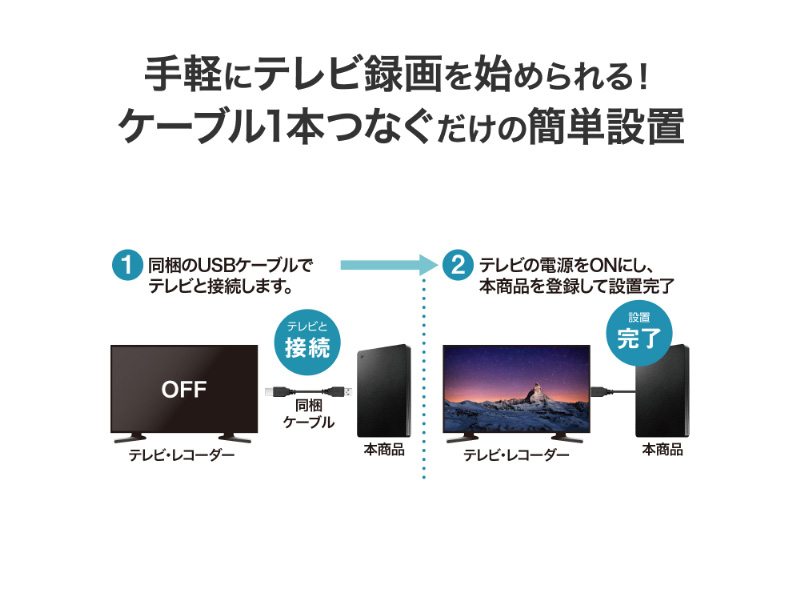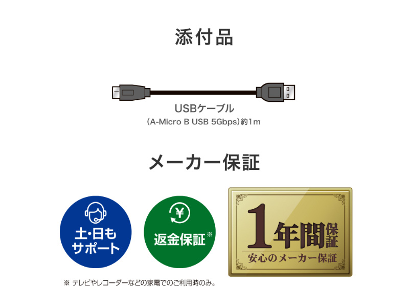 | 対応機種 | Windowsパソコン、Macパソコン、Chromebook、USBハードディスク録画に対応したAV機器 |