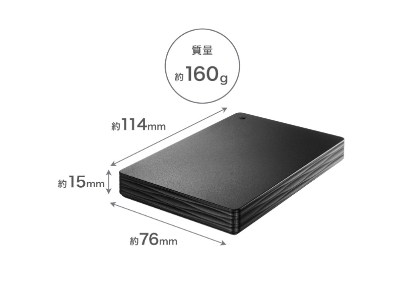 | 商品名 | USB 5Gbps(USB3.2 Gen1)対応 ポータブルハードディスク「カクうす Lite」 1TB ブラック |