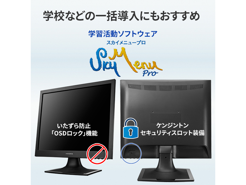 | 商品名 | スクエア液晶ディスプレイ 17型/1280×1024/アナログRGB、DVI-D(HDCP対応)/ブラック/スピーカー:あり/ブルーライト低減機能搭載!/「5年保証」/抗菌モデル |