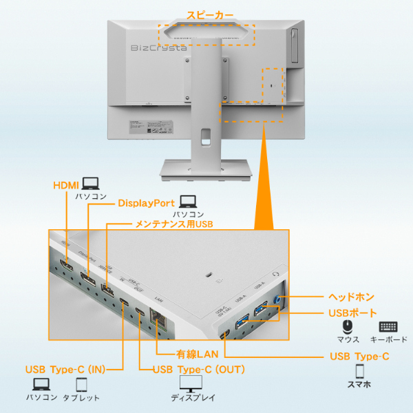| 入力端子 | HDMI、DisplayPort、USB Type-C |