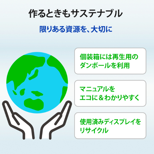 | 適合規格 | VCCI Class B、RoHS指令準拠(10物質)、J-Mossグリーンマーク、電気用品安全法(本体)、PCリサイクルマーク、国際エネルギースタープログラム、グリーン購入法、PCグリーンラベル(Ver.14★★★)、文部科学省 学校環境衛生基準 |