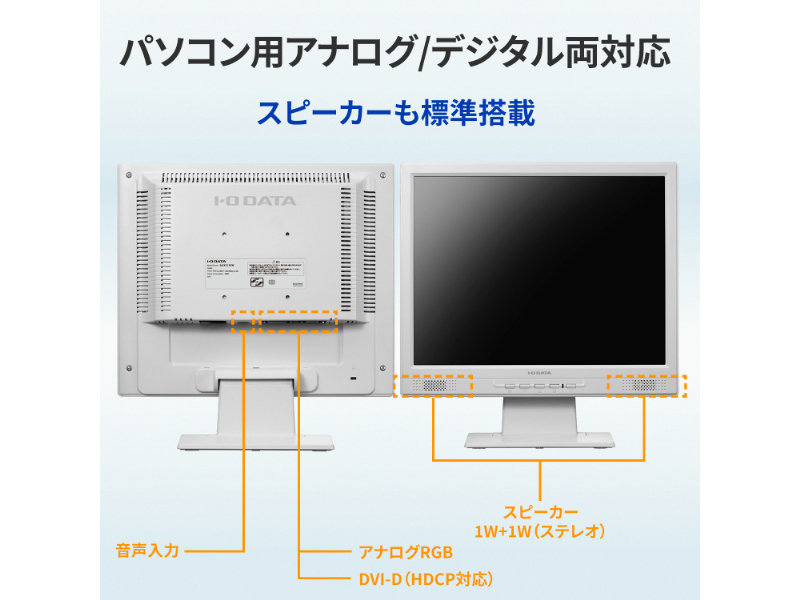 スクエア液晶ディスプレイ 15型/1024×768/アナログRGB、DVI-D/ホワイト/スピーカー:あり/広視野角パネル採用、目に優しい機能搭載/「5年保証」/抗菌モデル