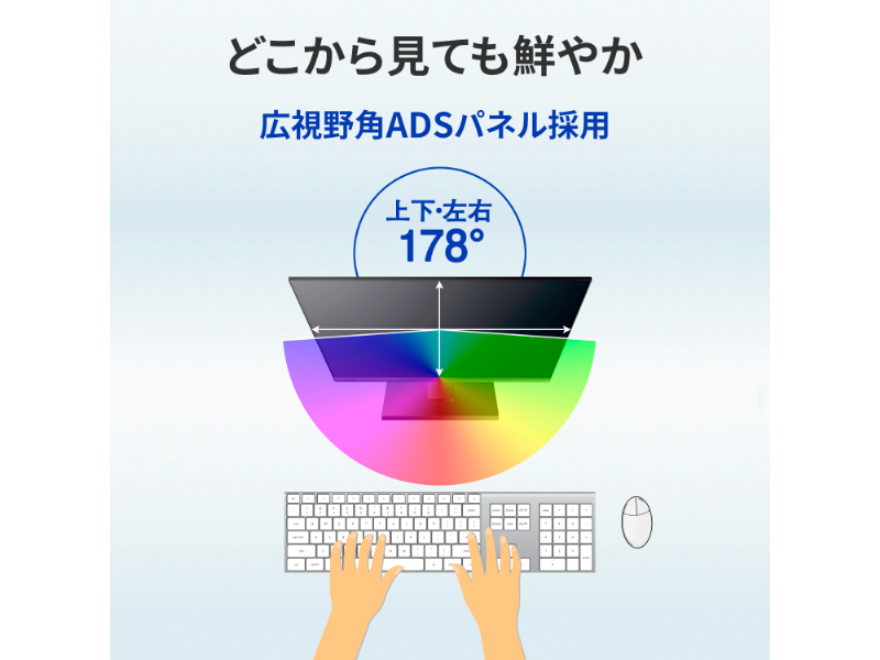 輝度:350cd/m2/応答速度:7ms/最大消費電力:18W/■どの角度から見ても美しく鮮やかに映し出す広視野角パネル「ADSパネル」を採用。DVI-DとアナログRGBに対応しパソコンの出力に合わせて使用できます。また、コンパクトサイズで動作時の使用可能温度が50℃まで対応可能なため、工場や高温環境でも快適にご利用いただけます。■ナノソリューション株式会社のSIAA取得済み光触媒コーティング材「ナノディフェンダーAg(+)(R)」を塗布したモデルをご用意しております。アルコール除菌に比べ、酸化チタン光触媒コーティングは持続力がとても高く、光がある限り常に光触媒作用を発揮します。■上下左右178°の広視野角なADS(Advanced super Dimension Switch)パネルを採用。見る位置や角度による色やコントラストの変化が少なく、どこから見ても映像を鮮明に映し出します。「ADSパネル」は特性に偏りがほとんどないため、さまざまな用途で使いやすいパネルです。■パソコンとの接続にはDVI-D(HDCP対応)とアナログRGBに対応。パソコンの出力に合わせてお使いいただけます。