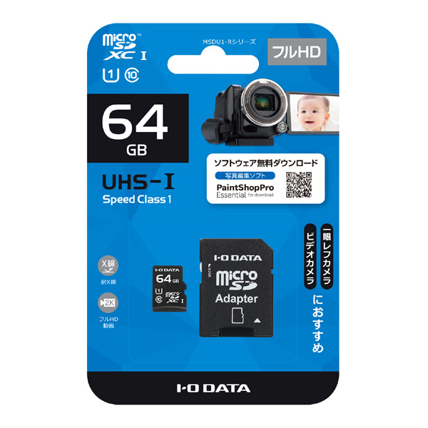 | 商品名 | UHS-I UHS スピードクラス1対応 microSDXCメモリーカード(SDカード変換アダプター付き) 64GB |