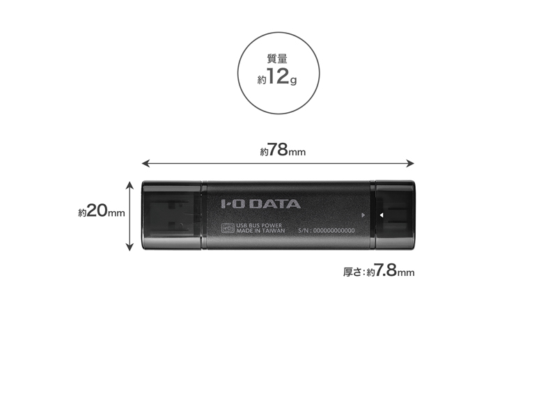 | 商品名 | USB 10Gbps(USB3.2 Gen2)USB-A&USB-C(R)対応 スティックSSD 1TB |