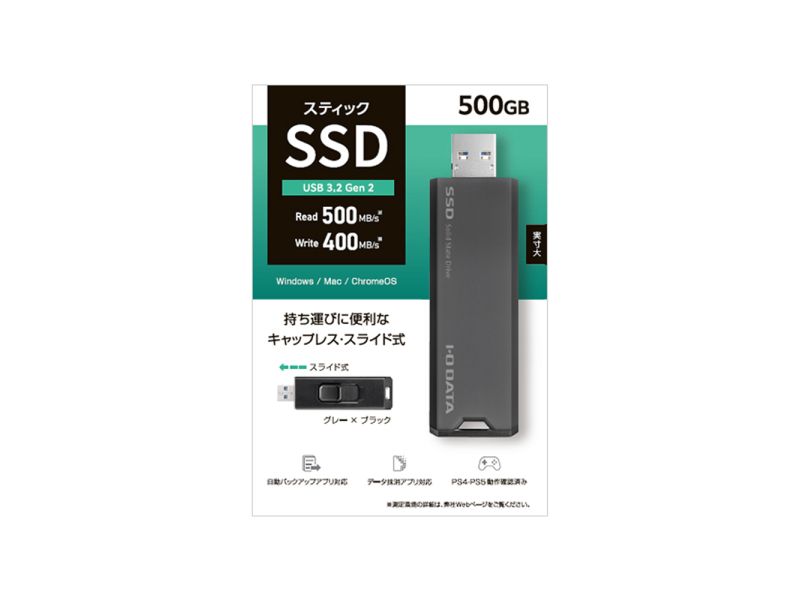 | 商品名 | USB3.2 Gen2対応 スティックSSD 500GB グレー×ブラック |