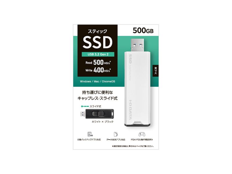 | 商品名 | USB3.2 Gen2対応 スティックSSD 500GB ホワイト×ブラック |