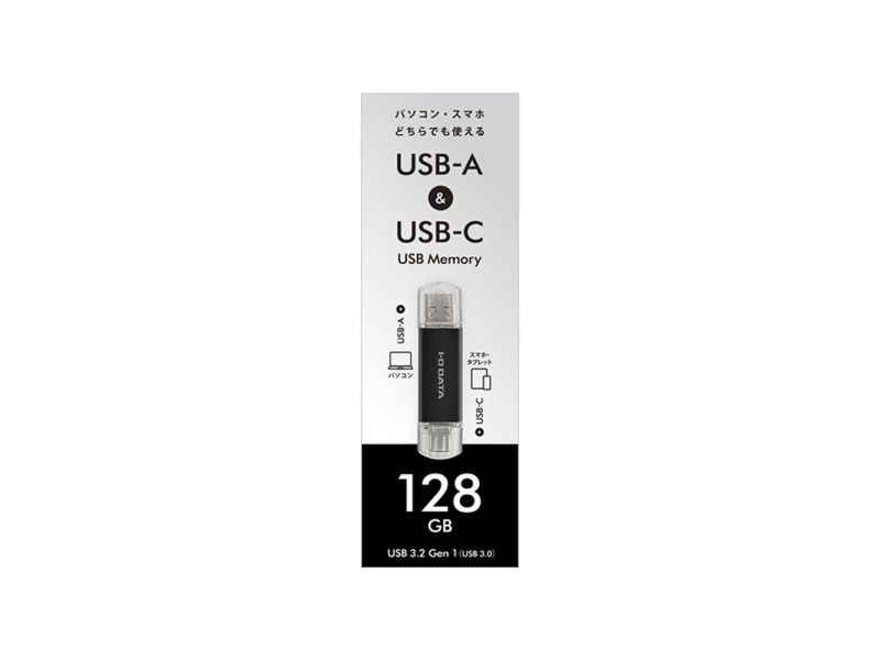| 商品名 | USB-A&USB-C搭載USBメモリー(USB3.2 Gen1) 128GB ブラック |