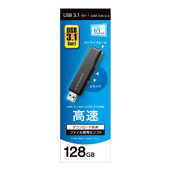 | 商品名 | USB3.2 Gen 1(USB3.0)/USB2.0対応 スタンダードUSBメモリー ブラック 128GB |