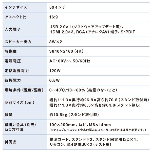 | サイズ | 50型 |