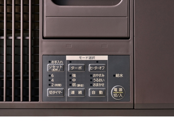 フィルターにヒーターで暖めた風を当てて加湿する「温風気化式」と室温の風を当てて気化させる「自然気化式」を自動で切り替え運転する気化ハイブリット加湿器です。湿度センサー搭載。お部屋の湿度を測定し、デジタル表示します。使用シーンに合わせて様々な運転モードに切り替え可能。運転切替ボタンの自動ボタンで3段階(おまかせ・うるおい・おやすみ)のモード切り替えができ、連続ボタンでは強・中・弱(静音)の切り替えができます。ターボボタンではパワフルに加湿できるターボモードに切替ができます。ヒーターオフモード搭載。ヒーターオフボタンで加熱気化式から自然気化式へと切り替えができます。ヒーターによる加熱を停止することで電力消費量を抑え、省エネにつながります。(※弱(静音)モードを除く)お手入れの時期が来るとお手入れランプが点滅してお知らせします。使用中に水タンク内の水が無くなると、アラームが5回鳴り、給水ランプが点滅し運転を停止します。切タイマー付で、2・4・6時間と設定できます。取っ手付で持ち運びがしやすいです。