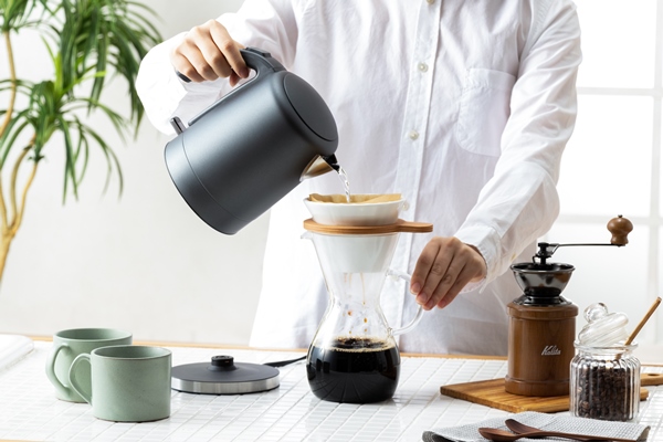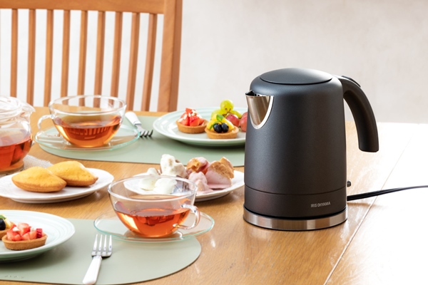 シンプルなステンレスデザインでインテリア性の高い電気ケトルです。コーヒーカップ約6杯分(1杯150ml)が沸かせる容量1000mlです。お湯が沸騰すると自動でスイッチが切れる自動電源オフ機能があるので安心です。容器内が空の状態で電源スイッチを入れても、電源が自動的に切れる空焚き防止機能を搭載しています。本体と電源プレートがセパレート式になっているので、本体の持ち運びがしやすいです。
