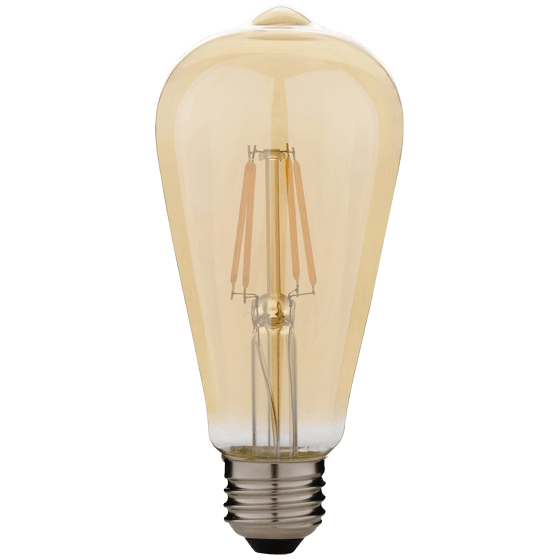 琥珀調ガラスがきらめくレトロな明かりのLEDフィラメント電球です。白熱電球のように全方向に光が広がります。ペンダントなどに適したインテリア性のあるデザインです。口金サイズがE26口金なので、照明器具を替えることなくご使用いただけます。密閉形器具にもご使用可能です。長寿命約20000時間で、ランプ交換の手間が少ないLEDフィラメント電球です。光色はレトロ雰囲気を演出するキャンドル色です。