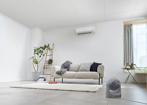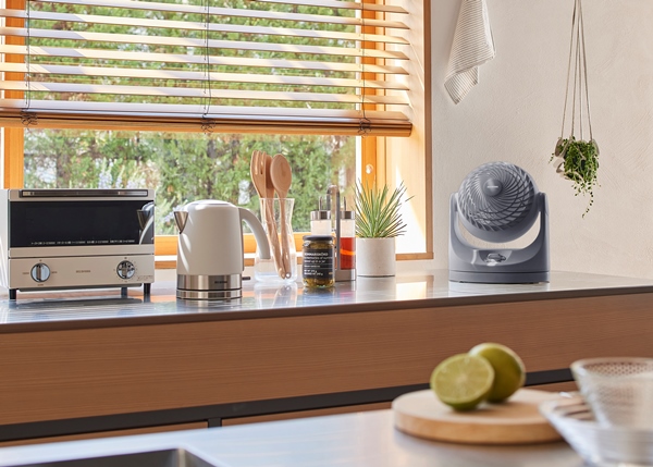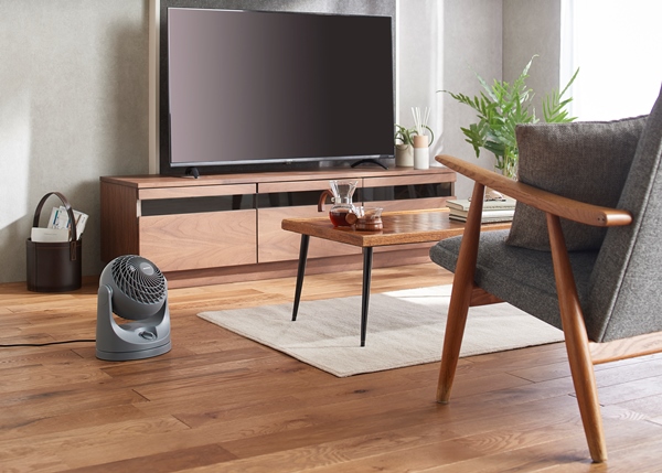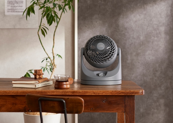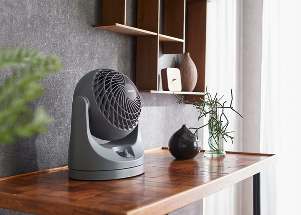 コンパクトなのにパワフルで大風量のコンパクトサーキュレーターです。これまでのH型サーキュレーターよりデザイン性・質感がUP!!サーキュレーター部分が丸いフォルムで、圧迫感のないコンパクトサイズになりました。ガードのすきまが小さくなったので、指がはいりにくく、より安全に使用できます。自動で左右に首を振る首振り機能付きです。手動で縦方向の角度調整ができます。上約90度~下約22.5度まで6段階の調整が可能です。エアコンと併用して夏は冷気を部屋全体へ、冬は暖かい空気を足元へ循環し一年中使えます。室内の空気の循環以外に、洗濯物の乾燥、部屋の換気、隣室への空気の送り込みなどに使うこともできます。