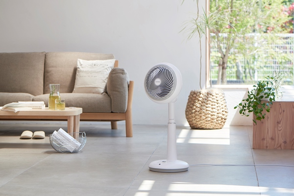 扇風機のやわらかな涼しさとサーキュレーターの強力な攪拌能力をあわせ持ったサーキュレーター扇風機です。上90°、下15°、左右60° ・90°・120°と、上下左右に首振りが可能です。特殊形状スパイラルグリル(特許登録済み)で、風を直線的に集中させ、より遠くまで届くスパイラル気流。立体形状の羽根を採用、表面積を広くとり、風切り音を抑えながら多くの風を送り出します。