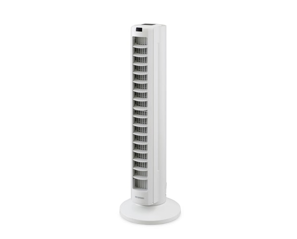 省スペースで広範囲にパワフル送風ができる、タワーファンです。手動で上下にルーバーを動かすことができ、自由に風向きを変えられます。(ルーバーは上半分・下半分で独立し、別々に方向設定が可能)左右自動首振り機能付きで、風量が8段階調整でお好みの風量設定が可能です。(風量の段階表示は見やすい7セグ表示)リズム風モード搭載で風の強さを変化させて自然に近い風を再現します。離れた場所からもラクに操作ができるリモコン付きです。就寝時に便利な切タイマー付き(最大9時間)DCモーター搭載で省エネ、静音設計です。おやすみモードで表示を減光し、暗所でのまぶしさを軽減できます。軽く触れるだけでスマートに操作ができる、静電タッチパネルの操作部です。