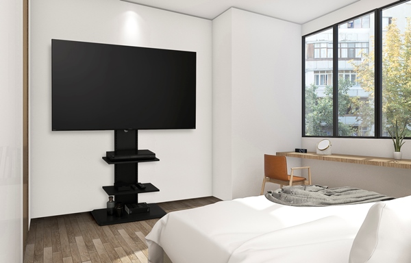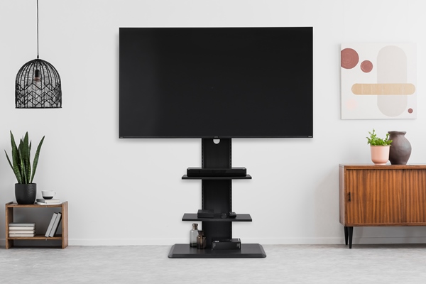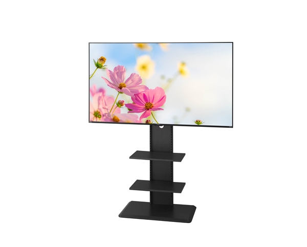 お部屋の空間を有効活用でき、お部屋になじみやすい木目調デザインで、おしゃれなインテリアにもなるスタンドテレビ台です。棚板・テレビ本体は、お好みに合わせて細かく高さ調節できます。ケーブルホルダー付きで、背面で配線をすっきりまとめられます。耐震実験済みで、安心設計です。※付属の転倒防止ワイヤーをご装着ください。※外部機関にて耐震試験を実施済みです。すべての環境での耐震性を保証するものではありません。高さ調節可能な棚板が2枚ついているので、使用シーンに合わせてカスタマイズできます。お好みに合わせて、ブラックオーク、オフホワイト、ライトナチュラルの3カラーから選べます。
