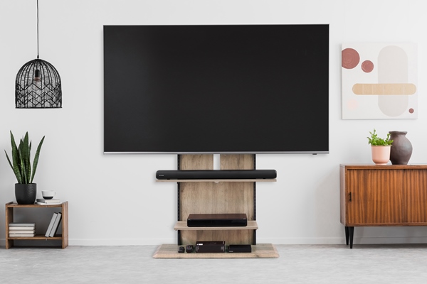 お部屋の空間を有効活用でき、お部屋になじみやすい木目調デザインでおしゃれなインテリアにもなるスタンドテレビ台です。棚板・テレビ本体は、お好みに合わせて細かく高さ調節できます。ケーブルホルダー付きで、背面で配線をすっきりまとめられます。耐震実験済みで、安心設計です。※付属の転倒防止ワイヤーをご装着ください。※外部機関にて耐震試験を実施済みです。すべての環境での耐震性を保証するものではありません。サウンドスピーカーの設置可能です。※サウンドスピーカー全般に対応しているわけではありません。高さ調節可能な棚板が2枚ついているので、使用シーンに合わせてカスタマイズできます。お好みに合わせて、ブラックオーク、ライトナチュラルの2カラーから選べます。