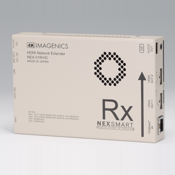 4K 60p 4:4:4 HDMI信号をCAT6Aケーブル1本で最長100mまで伝送します。NEX-SMARTシリーズの専用コントローラーやアプリケーション、10GbEスイッチと組み合わせて使用することで、多分配構成、マトリックス構成を構築することができます。