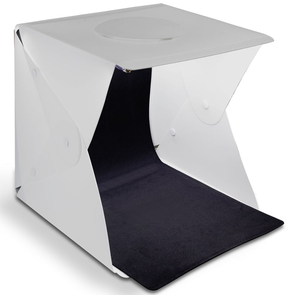 ◇折畳み撮影ボックス30◇簡単折畳みタイプ◇30cm角サイズ◇2列のLEDライトが被写体を明るく照らします◇背面シートは4色(黒/白/青/緑)◇持ち運びに便利な不織布ケース付き