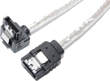 シリアルATA3ケーブル 片下L型 ラッチ付 50cm シルバー ラウンドタイプ