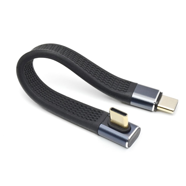 ◇TYPE-C変換ショートケーブル 直角L型SLIM◇PD EPR240W対応USB4.0準拠のType-C変換ショートケーブル◇Type-C端子をスリムに向き変換する直角L型形状◇スタイリッシュで丈夫なフラットケーブルタイプ◇急速充電&大電流に対応◇アルミニウムボディと金メッキ端子で高い耐久性◇最大電力240W、転送速度40Gbps、8Kに対応USB4.0準拠 8K/60Hz ケーブル長:13cm