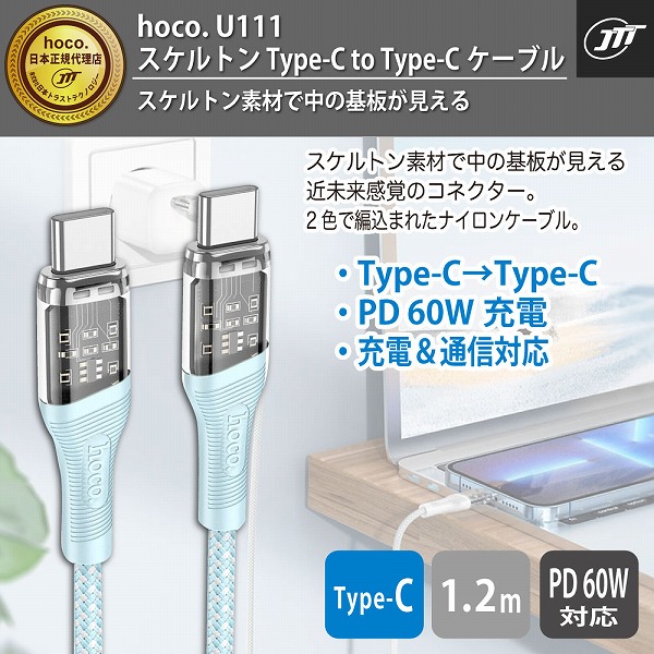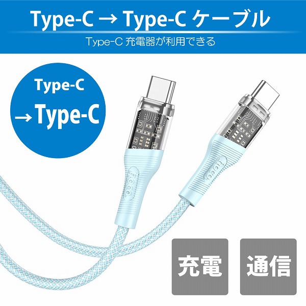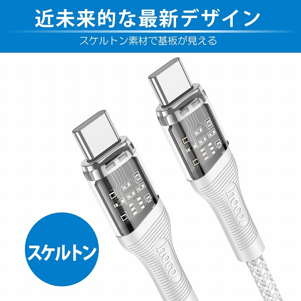 | 商品名 | hoco U111 スケルトン Type-C to Type-Cケーブル グレー |