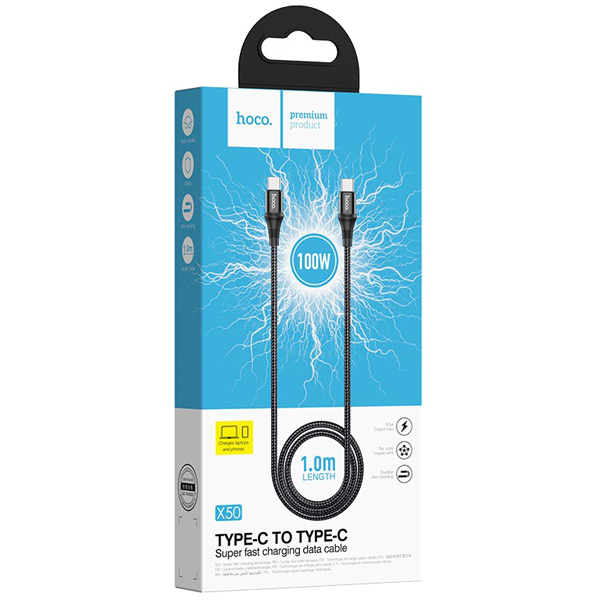 hoco X50 100WPD対応ナイロンケーブル 1m ブラック