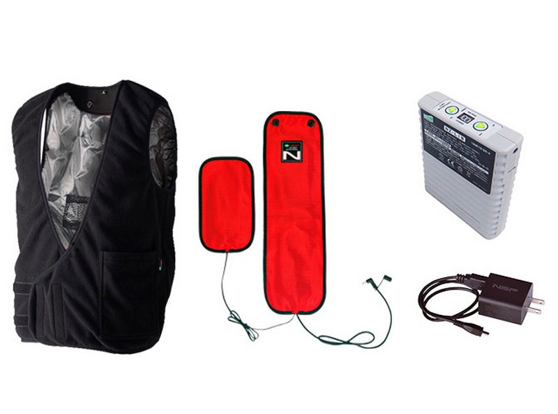 Nヒートベストを始めてご使用のかたにお勧めのフルセット。薄型ベスト+柔軟性のある発熱体なので、上着を着込んでも違和感がありません。大容量のハイパワーバッテリーがセットになっています。バッテリーはモバイルバッテリーとしても使用可能でスマートフォンのフル充電が約2回可能です。