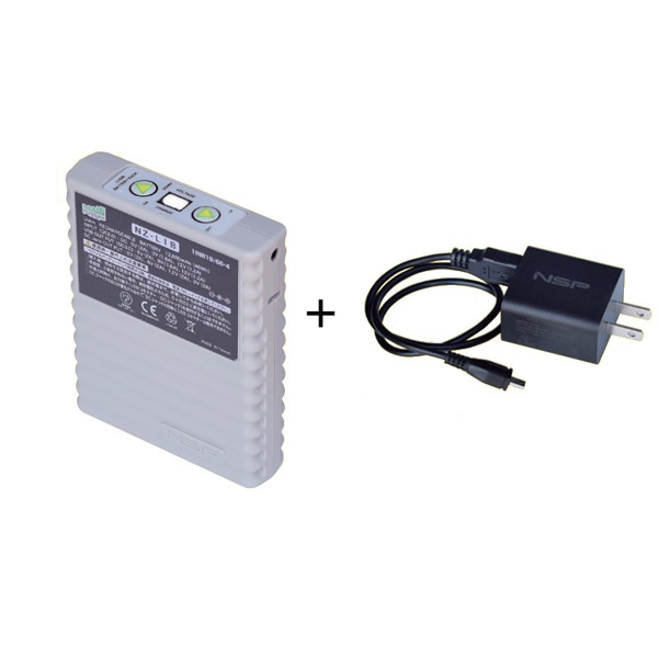 Nヒートベストのラバー発熱体NZ-RHEAT4、NZ-RHEAT3に対応した大容量ハイパワーリチウムイオンバッテリーと充電器のセットです。モバイルバッテリーとして使用可能。